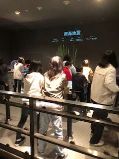 2グループに分かれて、地震体験をしました。阪神淡路大震災と予想される東南海地震の揺れを実際に体験しました。