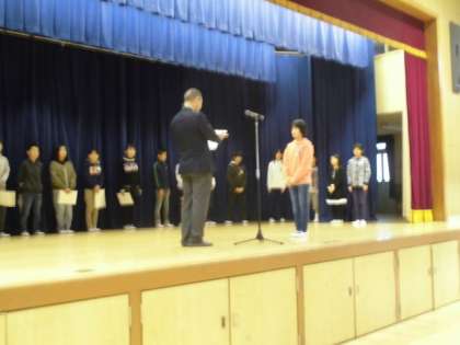 各自がそれぞれの立場から決意表明をした後、校長から一人一人に認証状を手渡しました。