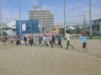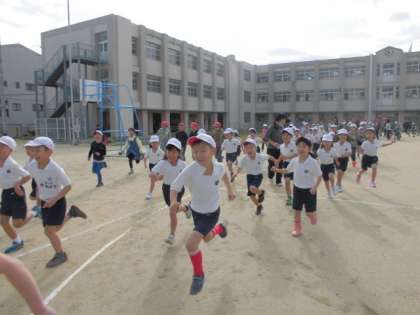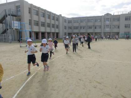 かけ足週間ということで、2時間目終了後の休み時間に全校で「ひがももRUN」をしています。今週は、「2分走って1分歩く」を2回繰り返して行っています。