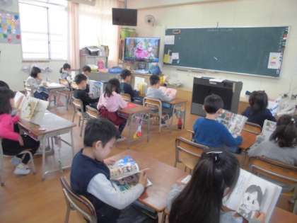 今朝も書く学級ごとに、子どもたちが読書に集中しています。