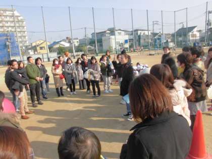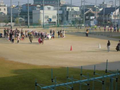1年生は、運動場・芝生で、たこあげ、大玉転がしをしていました。