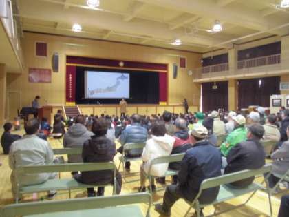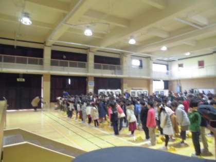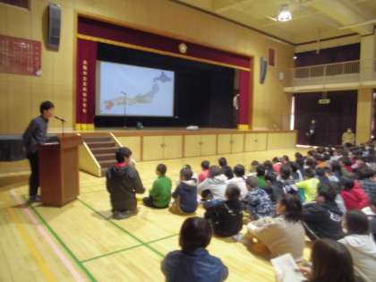 講堂に地域や保護者の皆様も集まり、東日本被災者の会の森松さんの話をお聴きしました。