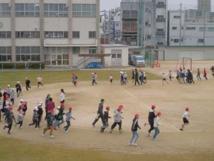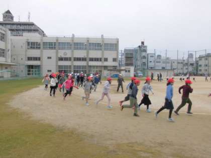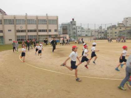 2時間目後の休み時間に「ひがももRUN」をしました。