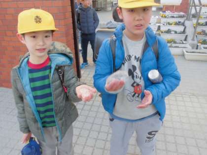 登校途中に見つけた氷を持って来て、見せてくれる子どももいました。