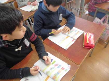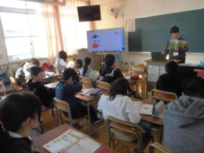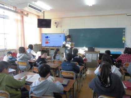 5年生が英語を聴きとって、日本語で書く活動をしていました。