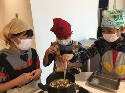 また、楽しみにしていた調理実習「ごはんと味噌汁、野菜炒め」も行いました。