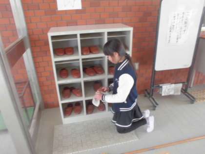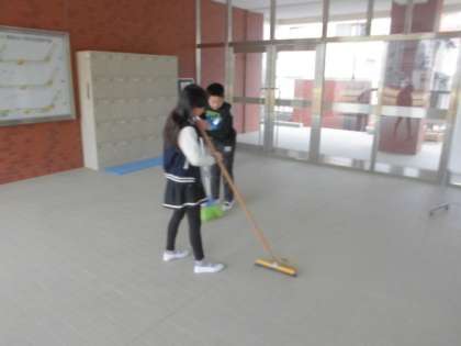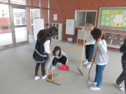 今日も、昼の清掃時に4年生が玄関の掃除を頑張っていました。