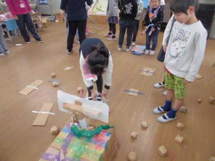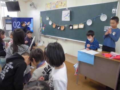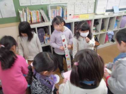 2年生が1年生を教室に招待しての「わくわくおもちゃランド」の活動をしていました。