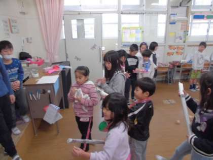 招待された1年生も、招待した2年生もみんなが笑顔で活動を楽しんでいました。