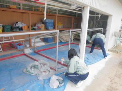 ゴールを拭き、下塗りをしてから色を重ねていきました。
