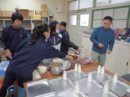 自分たちの分を含め、職員室等、各学級で指導していない教職員分の給食配膳活動をしました。