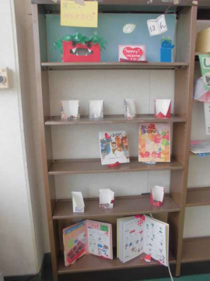節分にちなんだコーナーやお薦めの本コーナーや飾りつけなど、いろいろな本を紹介したり、図書室になにがあるのか子どもたちがわくわくして来れるようにしたりするなどいろいろと工夫していただいてます。