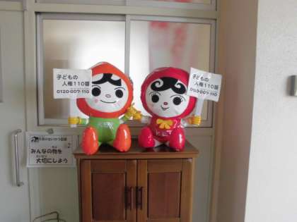 子どもの人権110番を掲げるマスコット人形が届きましたので、早速、校長室前に置きました。(2/5に校長室内に移しました)