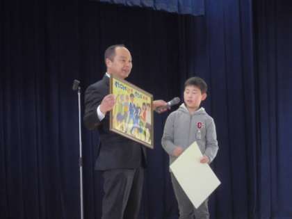 先週授与できなかった賞状と新たな賞状を手渡しました。