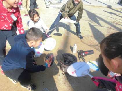 2.13 火 10:50 3年生 昔の道具 七輪体験