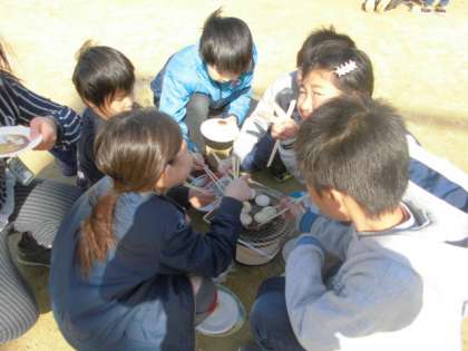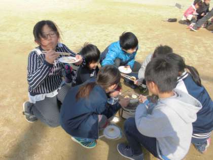 早く餅を焼いたグループは、砂糖醤油につけながらお餅をほおばっていました。