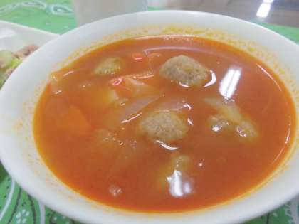 ミートボールと野菜のケチャップ煮は、ケチャップのほどよい酸味がミートボールや野菜のそれぞれの味を引き立てており、とてもおいしくいただきました。