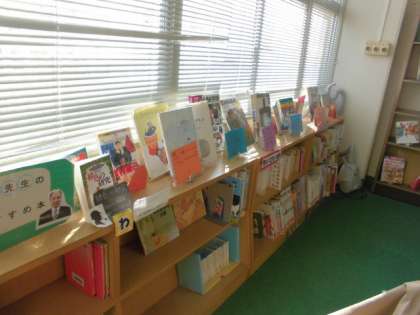 図書館補助員の昌山さんは、今日の読み聞かせの本や生活科の資料となる本を各学年担任と連携して他の図書館から借りてきていただいたり、各学年の国語科教材に関わる本のコーナーの準備をしていただいたりしています。