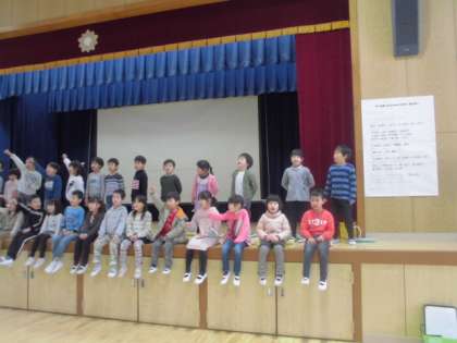 1年生は、生活科「もうすぐ2年生」ということで、学習してきたことを各グループごとに発表していました。