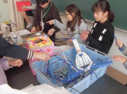 科学クラブは、クラブ発表に向けての空気砲を使った実験の準備や芝生に出て以前にやり残したペットボトルロケットの実験をしていました。