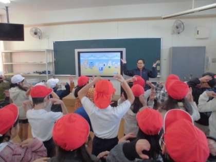 2年生の子どもたちは、英語活動にも慣れ、次にすることも理解しているので、すぐにのりのりの活動で盛り上がっていきます。