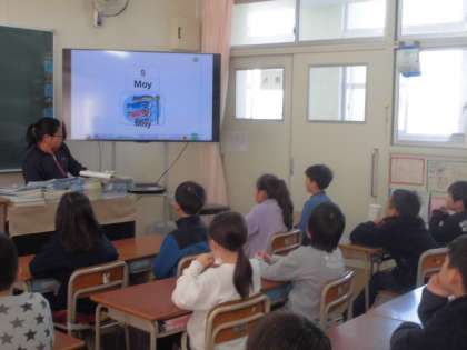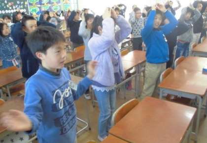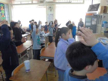 映像と歌に合わせて、声を出しながらリズムをとって動きます。