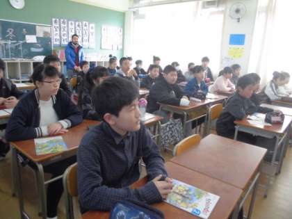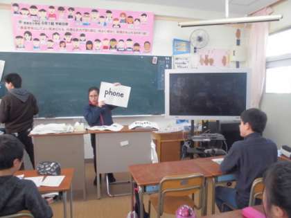 6年生は、英語の単語を見て、発音し意味を答えることを繰り返していました。