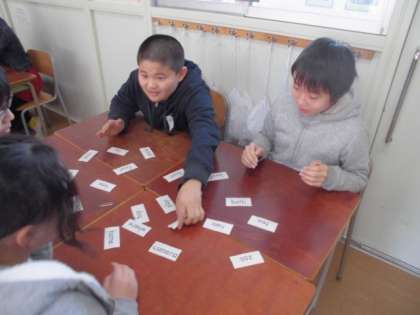 その後、繰り返し発音してきた単語を使ってのカルタが始まりました。