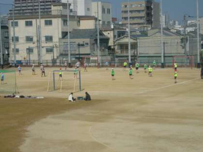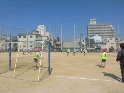 6年生は、汗をかきながら気持ちよさそうにサッカーをしていました。