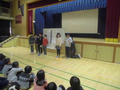 みんなに自分たちが活動してきたクラブに入ってもらおうといろいろと工夫して発表していました。