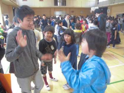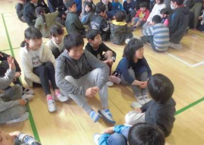 児童集会でいつも仲良く活動している子どもたち。今日もお楽しみのゲームで盛り上がっていきました。