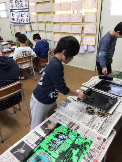 3年生が版画の印刷をしました。