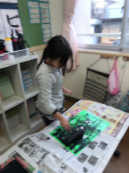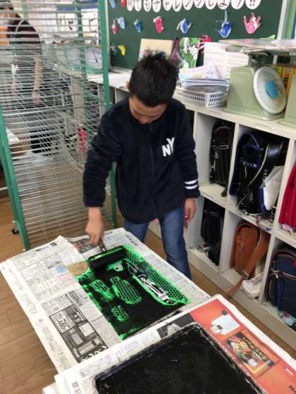 刷り上がった作品は、乾燥させて後日、教室に掲示するそうです。