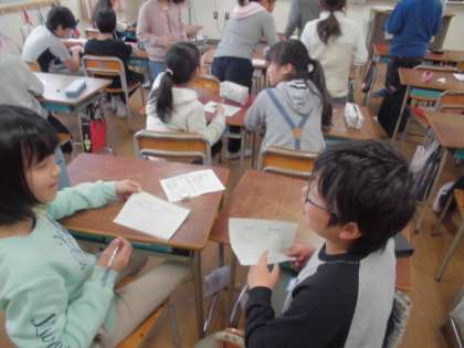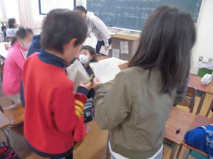そして、カードを持って3分間、いろいろな人に誕生日を訊いて書き込んでいました。