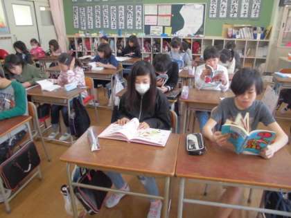 4年生は算数の課題を終えた児童が本を読んでいました。