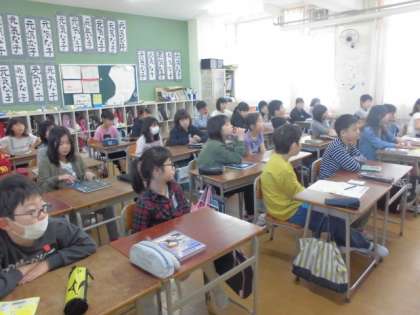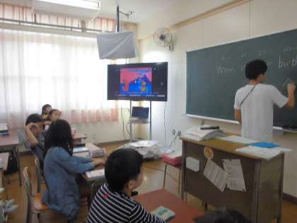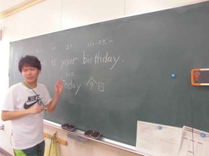4年生の教室では、"When is your birthday ?"ということで、活動してました。