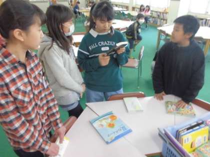 2年生に本の読み聞かせをしていただいたり、5年生は新刊本をチェックしたりしていました。