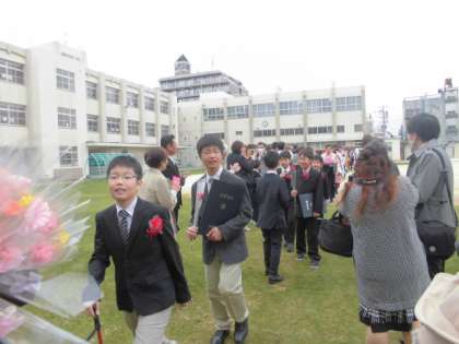 その後、5年生、教職員、保護者の皆様による花道を通って、巣立っていきました。
