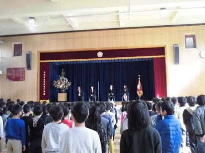 修了式に続いて、退職、転任する教職員の離任式を行いました。