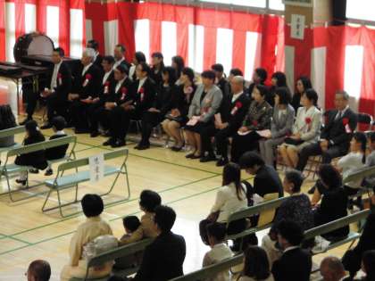 来賓の皆様や保護者の皆様、PTA役員、実行委員の皆様にも多数ご出席いただいて、晴れやかな入学式になりました。