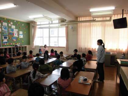 食べるときによくないことが起こったその原因について、自分が思ったことをみんなの前で発表していました。まわりの子どもたちは、その意見をしっかりと聞こうとしていました。