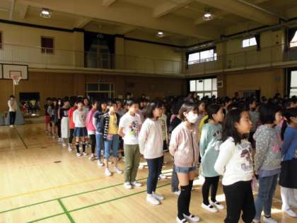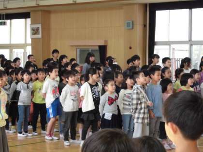 1年生に校歌を覚えてもらおうと、大きな声で校歌を斉唱しました。