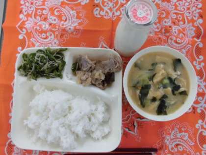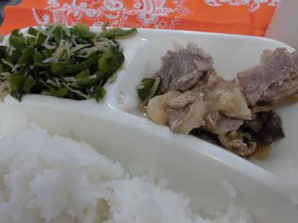 献立は、豚肉のしょうが焼き、みそ汁、じゃこピーマン、ごはん、牛乳でした。