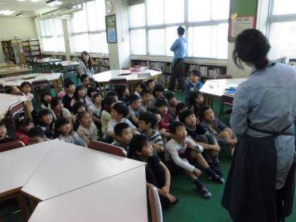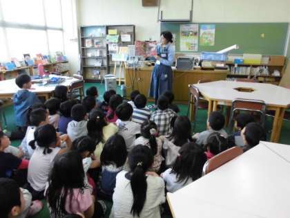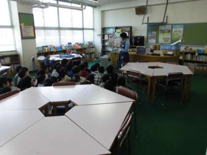 図書館補助員の昌山さんの読み聞かせが、子どもたちは大好きです。