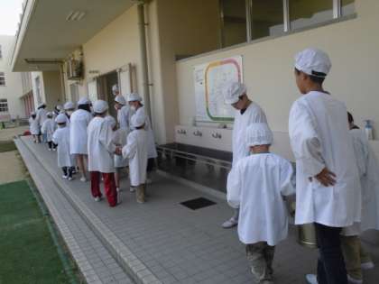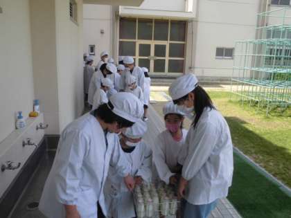 当日は、1年生だけで給食を運んで配膳し、給食をいただいた後、返却するところまでその様子を参観していただきます。