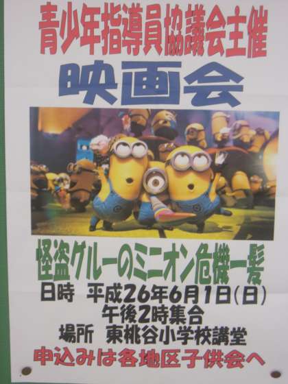 6月1日(日)午後2時から本校講堂で、青少年指導員協議会主催による「映画会」が行われました。映画は「怪盗グルーのミニオン危機一髪」でした。たくさんの子ども達が楽しみました。