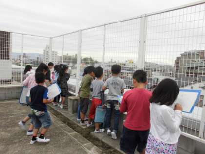 ふだん、屋上に上がることはないので、子どもたちも少し興奮気味です。