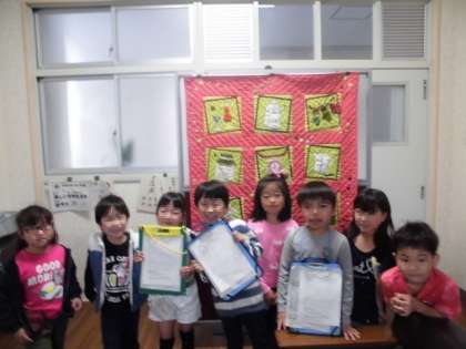 どの班も全問正解でした。校長からは、班の子どものカードにサインをしました。