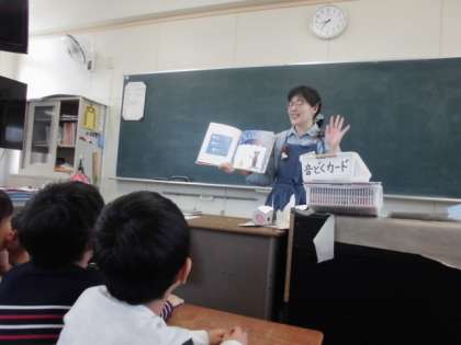 今年度からは、8時30分に来ていただき、各学年の読書タイムで読み聞かせなどをしていただいています。