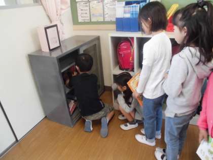3年生の教室へ行くと、読書タイムが終わって本をていねいに片付けていました。